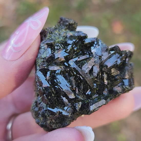 Discovered high in the mountains of Hakkari Province in southeastern Turkey, these extraordinary crystals—often called Forest Epidote or Fairy Forest Epidote—are celebrated for their vibrant green color, metallic sheen, and intricate drusy texture.