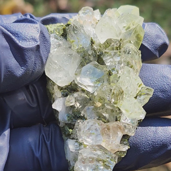 Discovered high in the mountains of Hakkari Province in southeastern Turkey, these extraordinary crystals—often called Forest Epidote or Fairy Forest Epidote—are celebrated for their vibrant green color, metallic sheen, and intricate drusy texture.