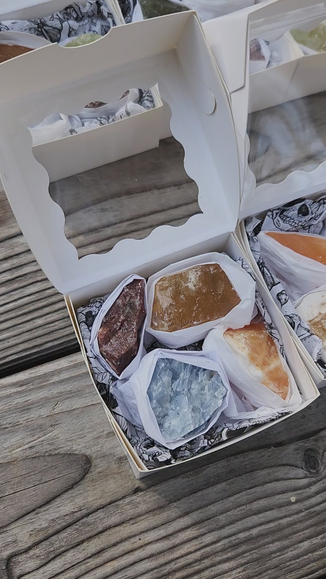 These boxes are perfect for collectors, beginners, or anyone who loves colorful, happy crystals.
