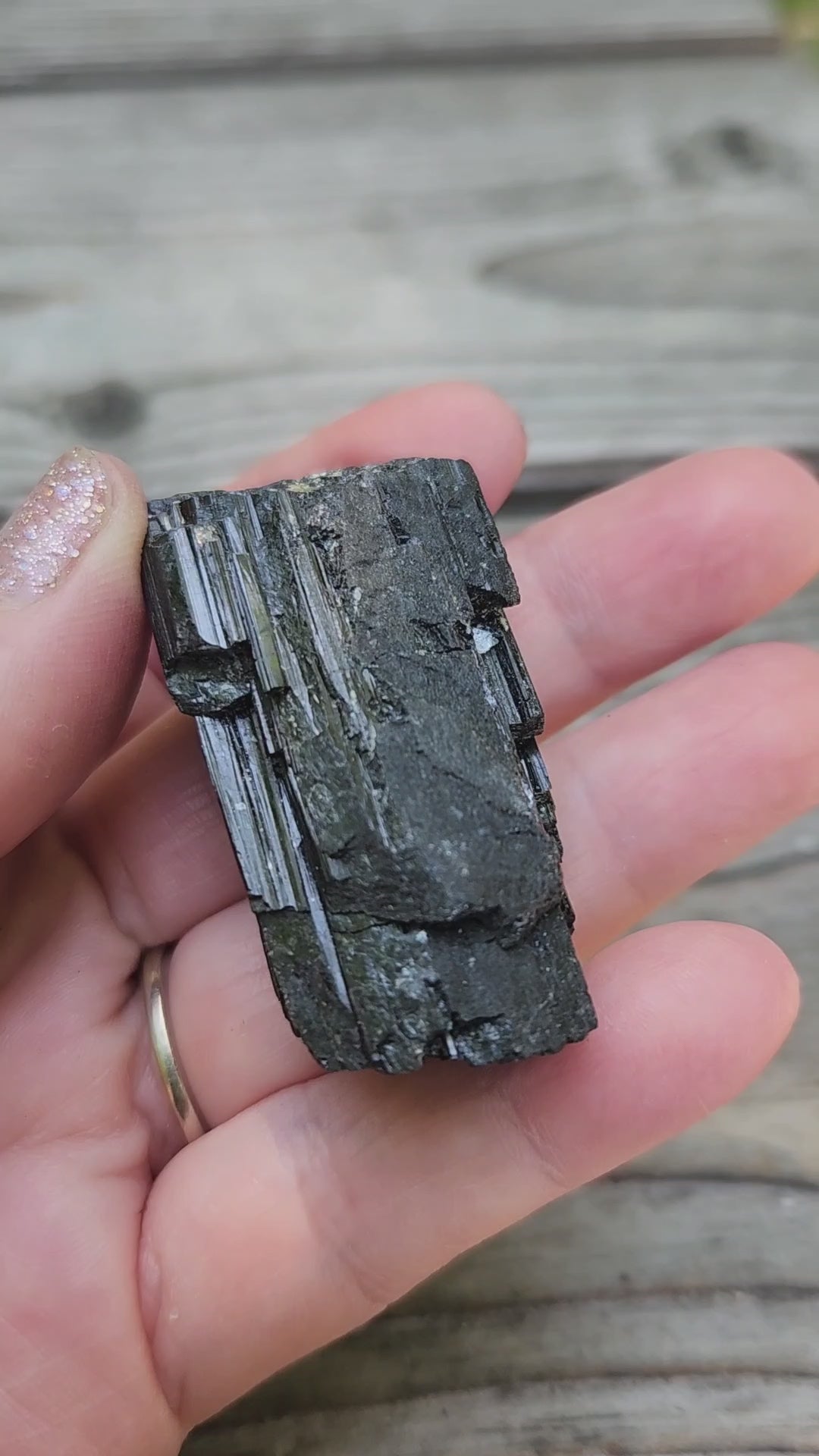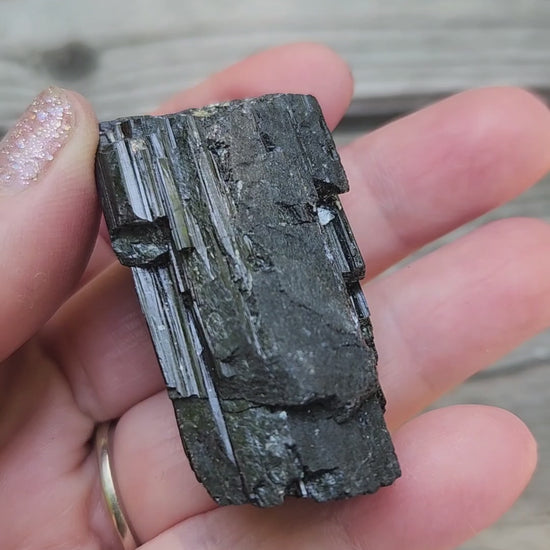 Beautiful Black Tourmaline Crystal . Please also see the video of how much shimmer these stunning high quality pieces have. You receive exact piece shown. Pair these with our Selenite Wands for a powerhouse combination.