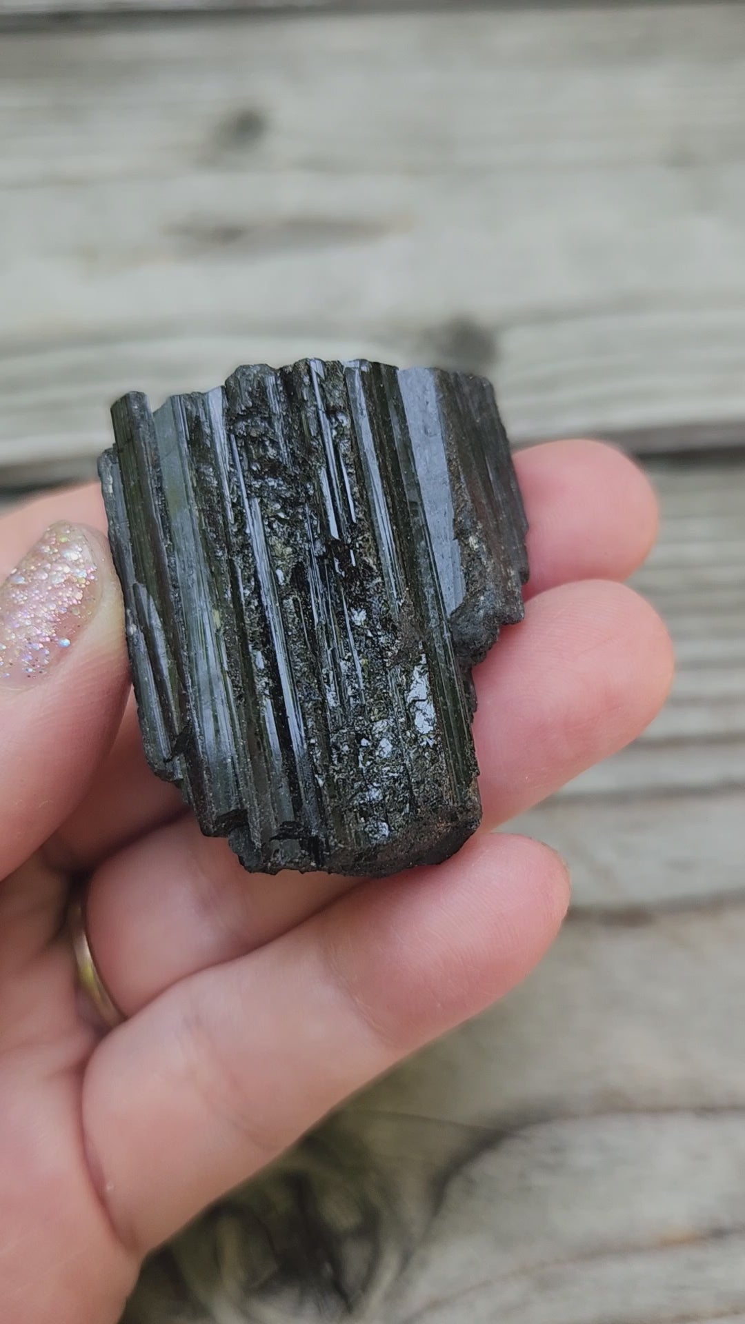 Beautiful Black Tourmaline Crystal . Please also see the video of how much shimmer these stunning high quality pieces have. You receive exact piece shown. Pair these with our Selenite Wands for a powerhouse combination.