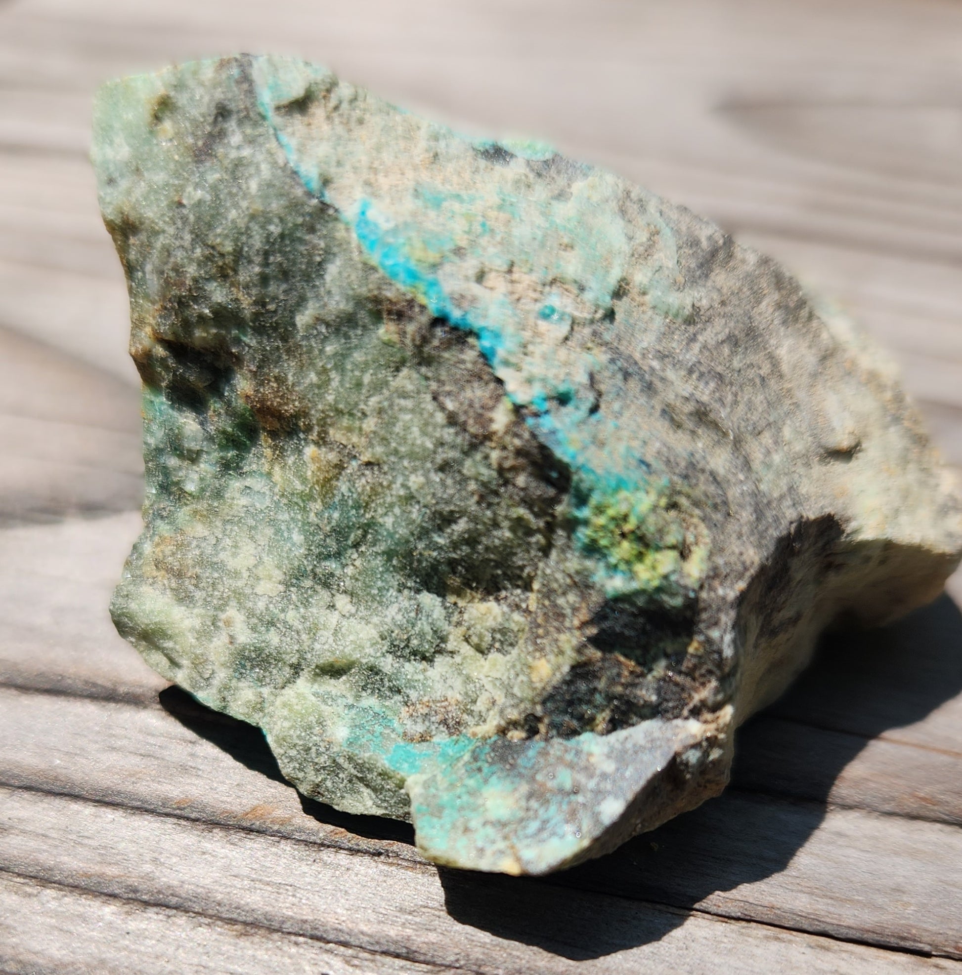 Beautiful rough Malachite Azurite Chrysocolla specimen from Arizona U.S.A. The light blue from the Chrysocolla in this piece really stands out. It's so pretty and similar to a turquoise color. Item#SP283
