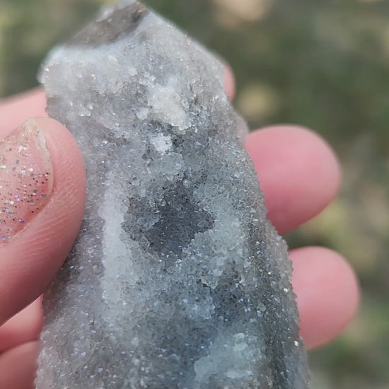 Gorgeous and sparkling Black Sphalerite Druzy Tower / Obelisk. Please watch video to see how shiny it is, pictures don't do it justice!
