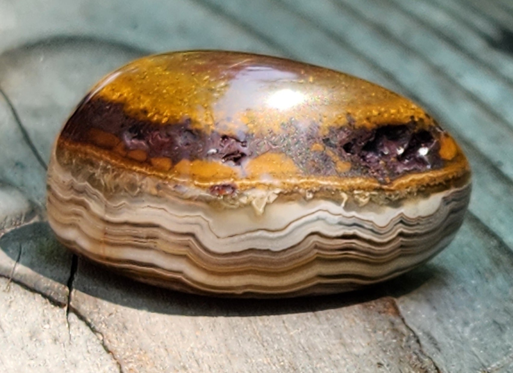 Gorgeous Crazy Lace Agate tumbled by BC Crystals and Rocks. Approximately 35mm wide.