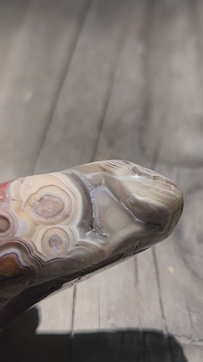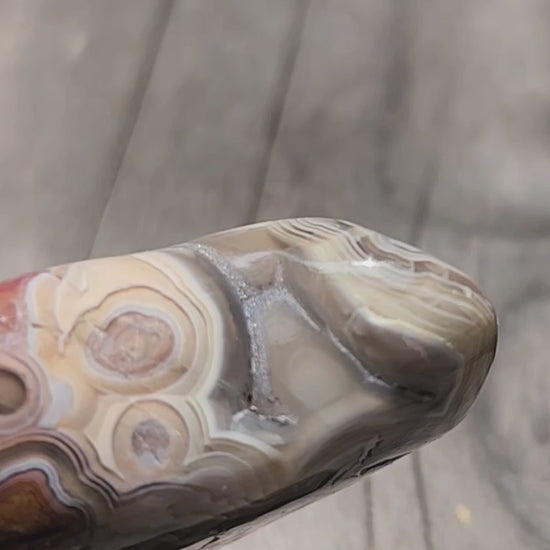 Gorgeous Crazy Lace Agate tumbled by BC Crystals and Rocks. Approximately 45 mm wide.